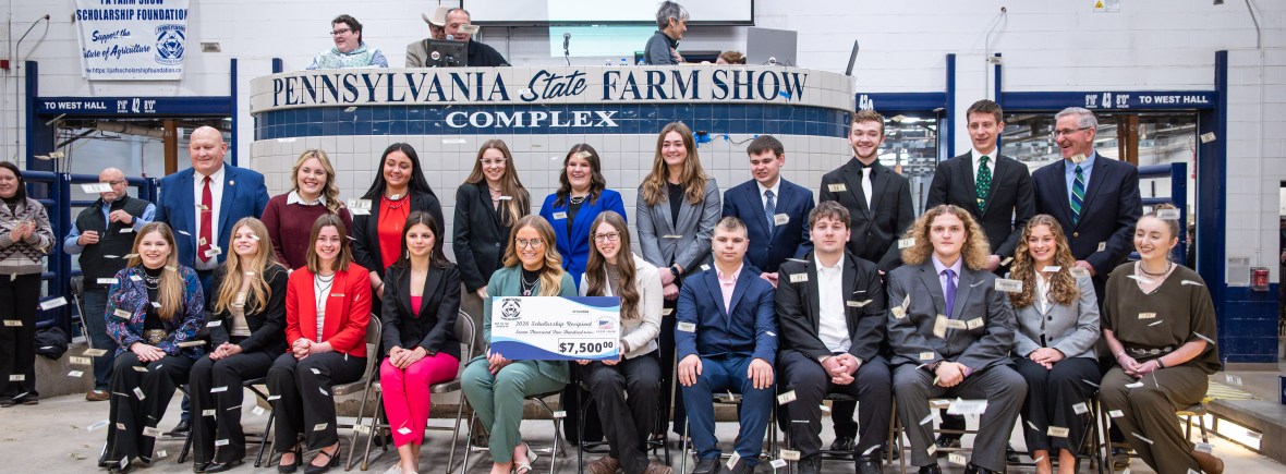 Each year at the Pennsylvania Farm Show the foundation awards scholarships to outstanding youth. Scholarships are awarded based on participation and volunteerism at the Pennsylvania Farm Show, academics, financial need, 4-H and/or FFA involvement and community service as determined from the application and letters of support.